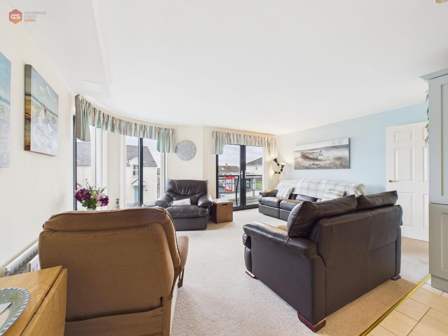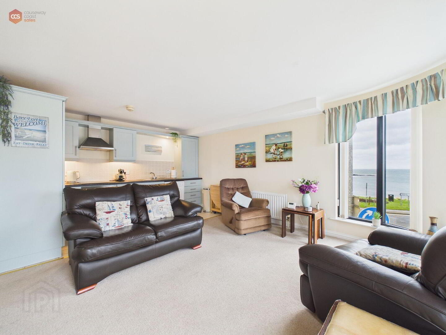 Two bedroom, first-floor apartment with sea views.